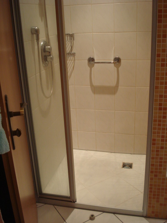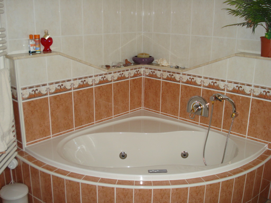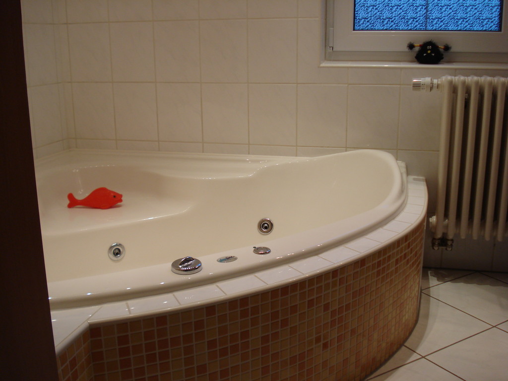 Bad mit gefliestem und beheiztem Duschboden,Eckbadewanne