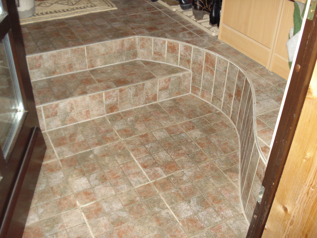 mit Gasbeton ummauert und mit bunten "Jasba" Fliesen belegt.