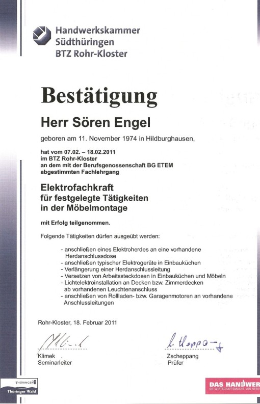 " Elektrofachkraft für festgelegte Tätigkeiten "